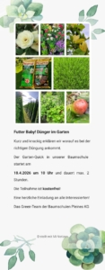 Hier finden Sie alles rund ums Grün. Wir informieren Sie hier über anstehende Baumschnittkurse, spezielle jahreszeitliche Angebote und weiteres Wissenswertes.